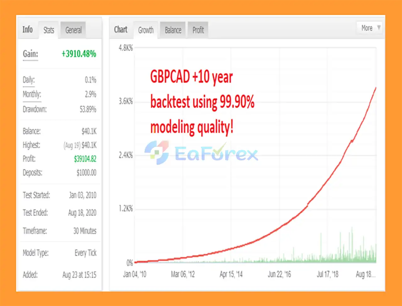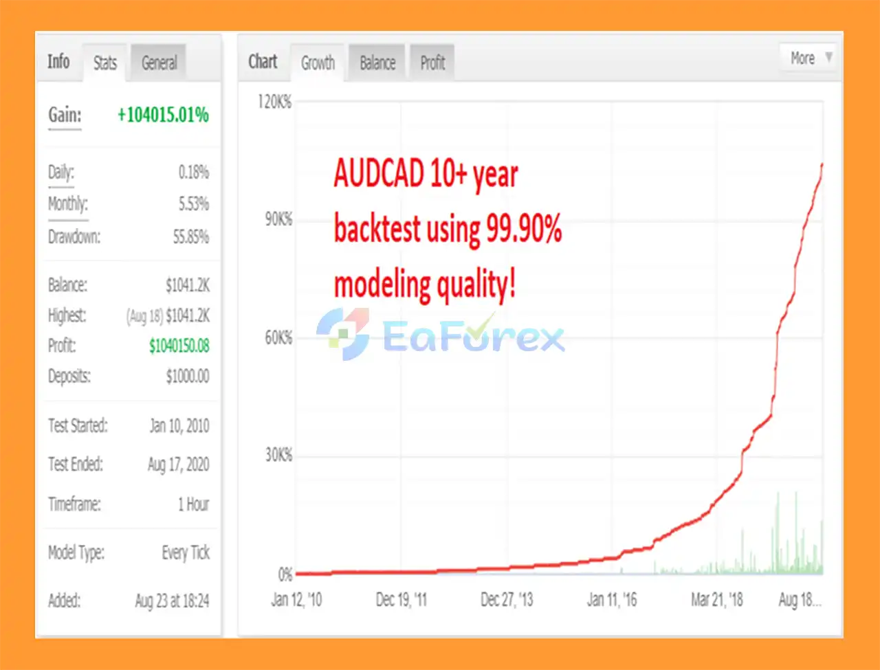 • Long-Term Proven Performance: Backtested over 10+ years with 99.90% modeling quality and no losing months recorded.