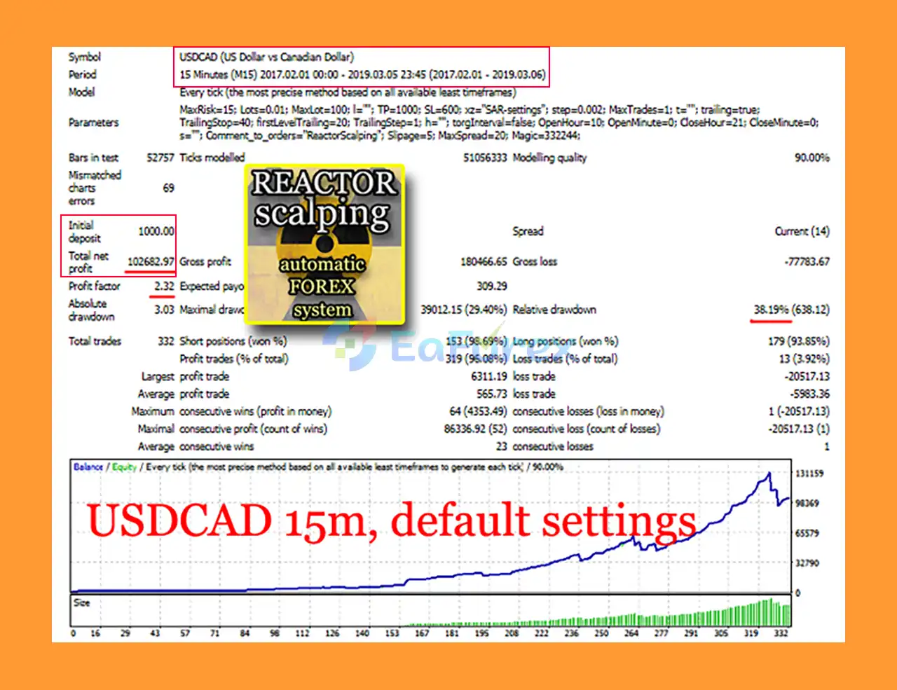 ReactorScalping EA MT4 is an automated EA for high probability scalping trading, using strict risk control and market filters on major Forex currency pairs.