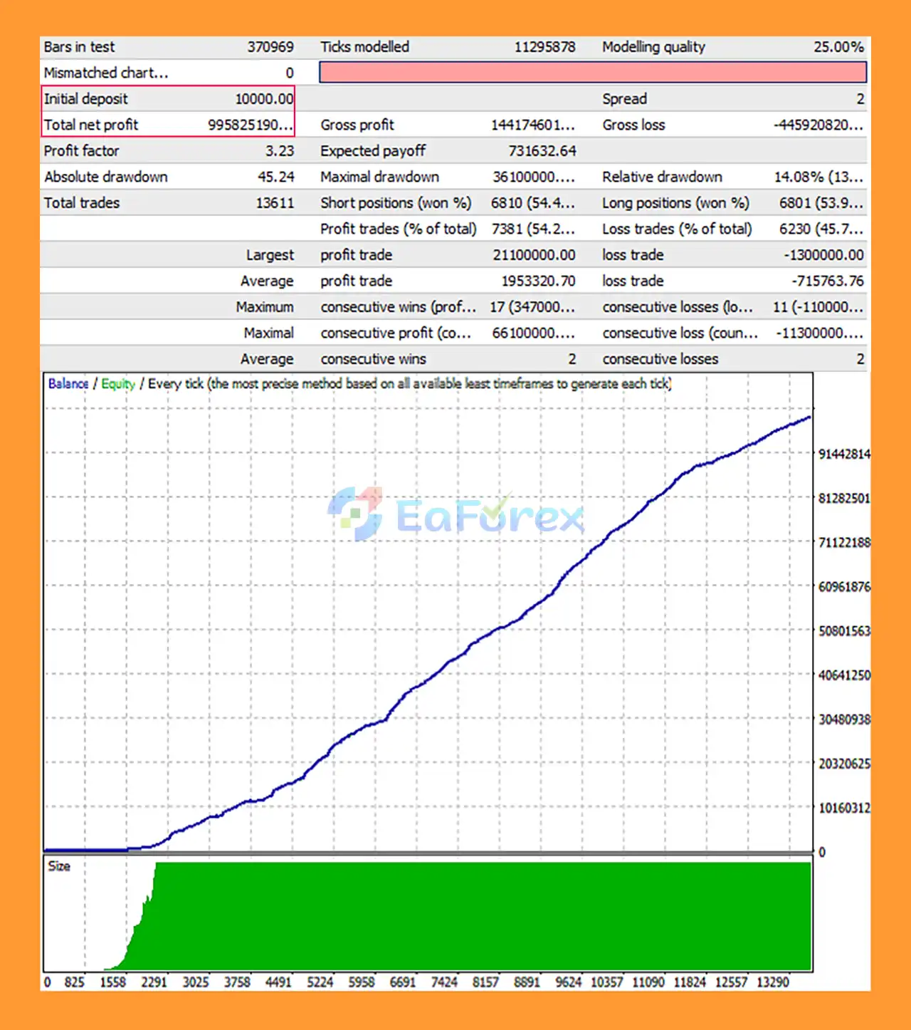 You can backtest the EA using the Strategy Tester in MetaTrader 4. For the most accurate results, it is recommended to use “All Ticks” modeling, which simulates real market conditions more precisely.