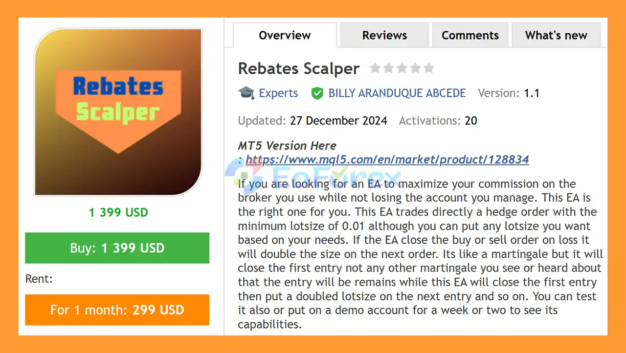 Rebates Scalper EA MT4 Overview