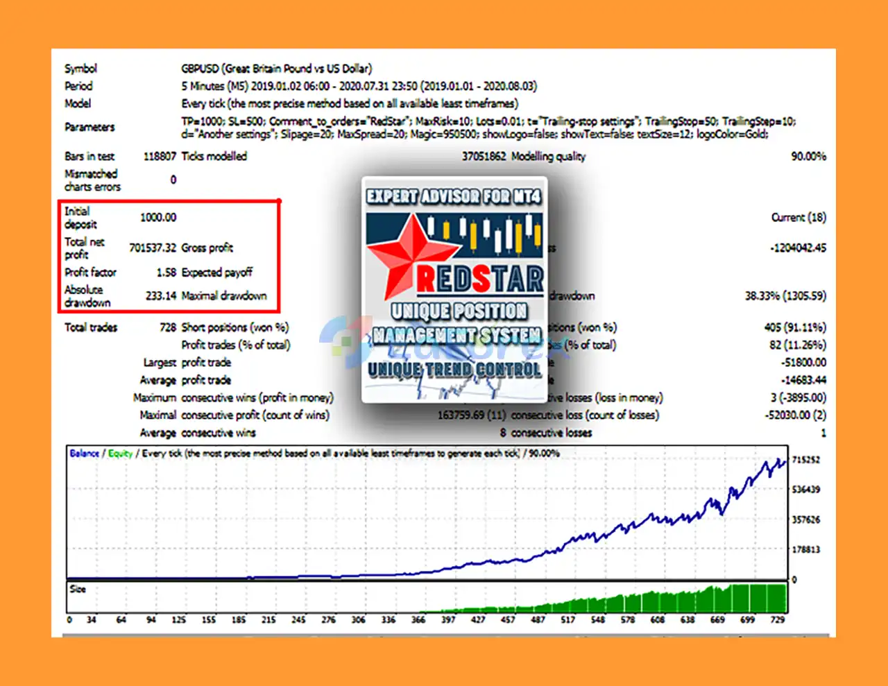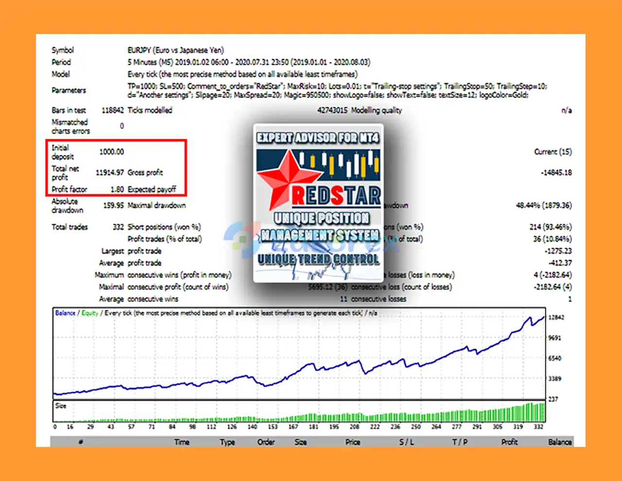 Red Star EA MT4 is a fully automated Forex EA for EURJPY, EURGBP, EURUSD, USDJPY, USDCAD & GBPUSD, using amplitude trend analysis for precise, low-risk trades.