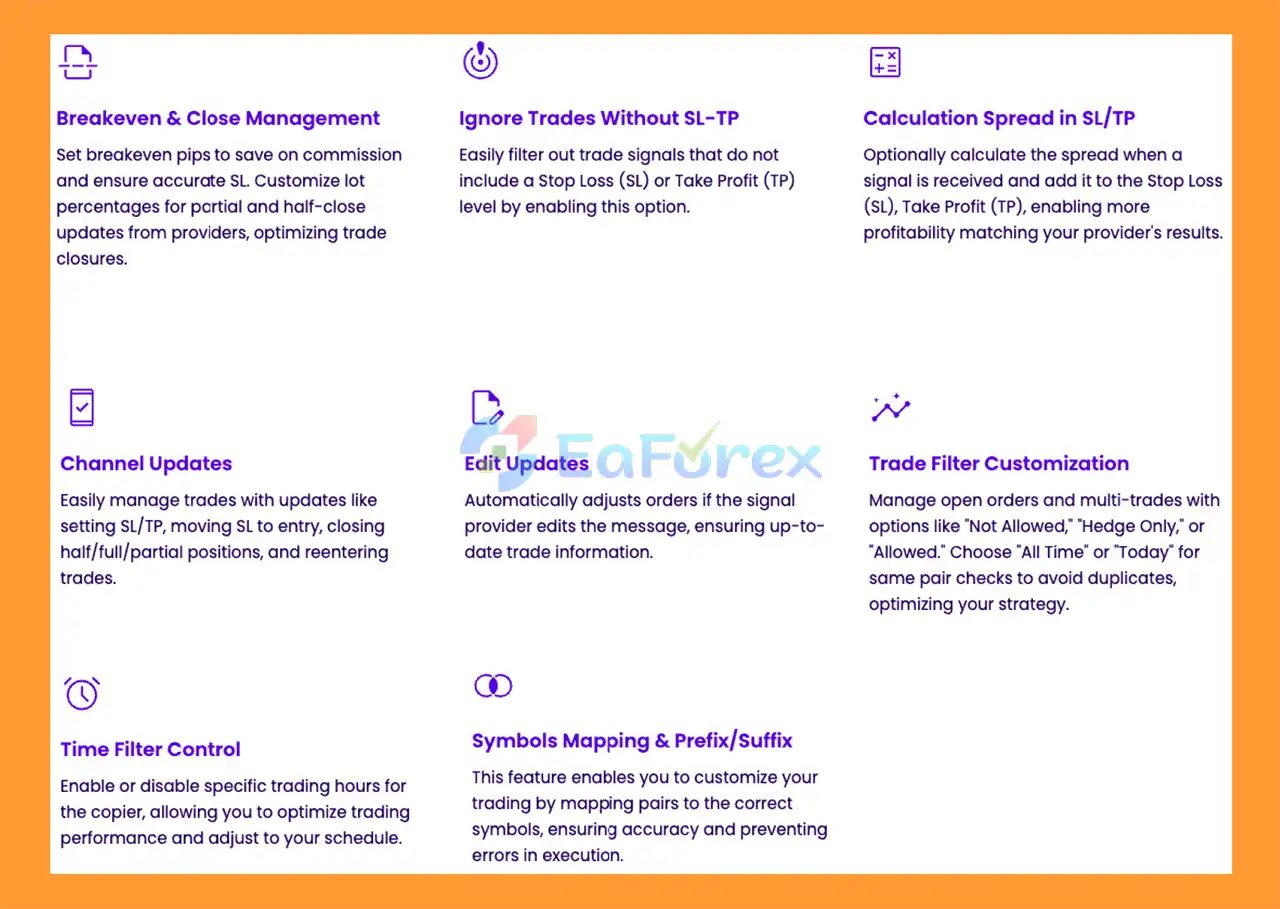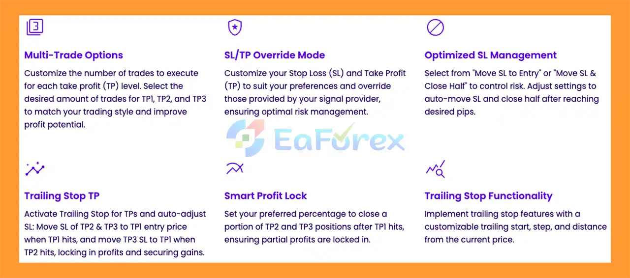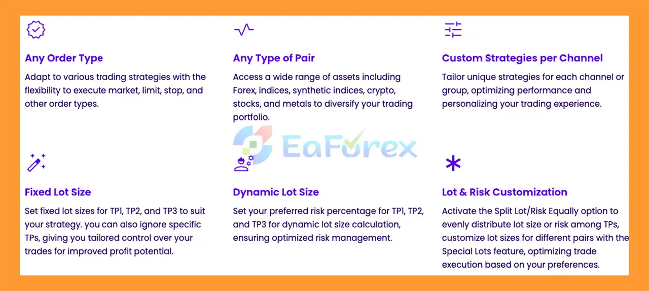 • Reduces Trading Risk: Provides full control over position sizing and exposure when copying signals.