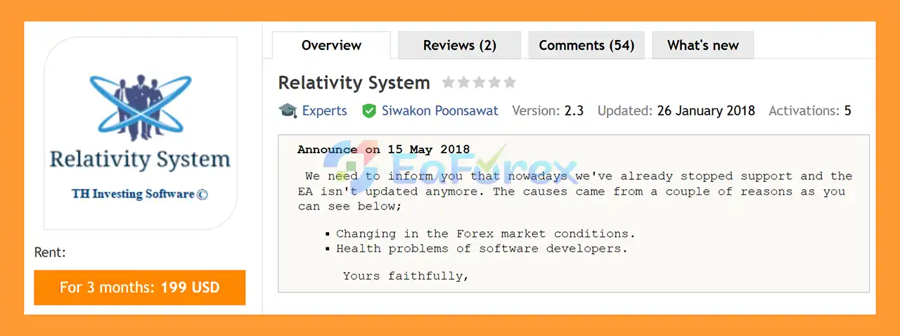 • Flagship Product: Relativity System EA MT4 is rated as the best performing product of the year.