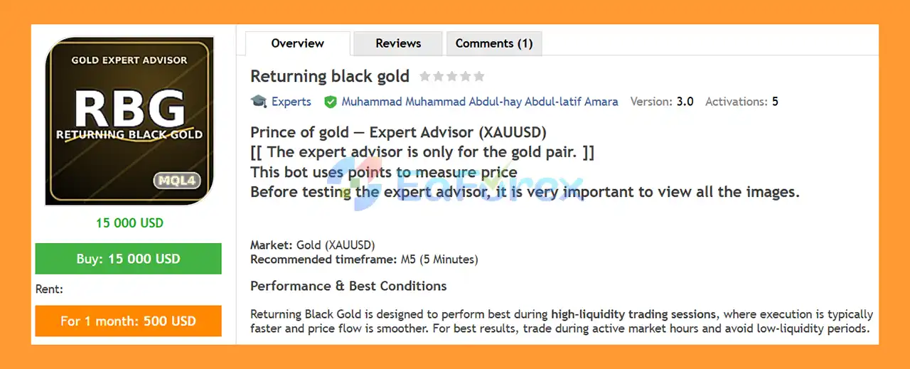 In summary, Returning Black Gold EA MT4 is a gold-focused automated trading solution built for traders who prioritize precision, execution quality, and risk control over aggressive exposure. By operating exclusively on XAUUSD with point-based calculations, spread and slippage protection, and internal TP/SL management, the EA is well-suited for navigating gold’s volatility during high-liquidity sessions. With default optimized settings and a fully automated M5 scalping approach, Returning Black Gold EA MT4 is an ideal choice for disciplined traders seeking stable, long-term performance on MetaTrader 4.