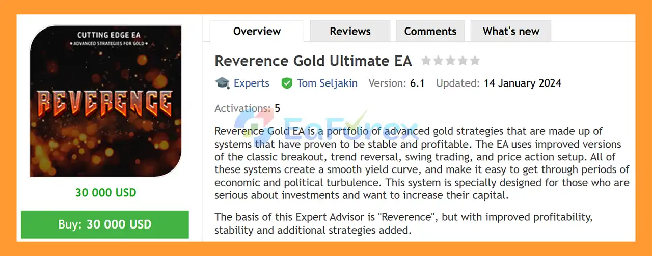 Reverence Gold Ultimate EA MT4 is a multi strategy gold trading robot combining breakout, reversal, swing, and price action systems for stable capital growth.