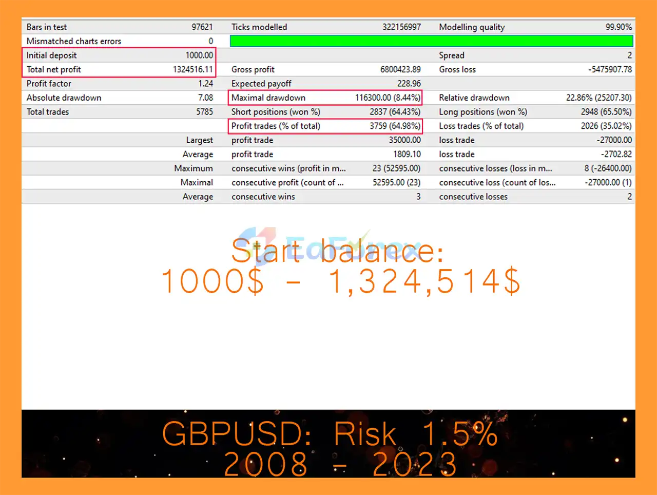 Yes, it is specifically engineered for XAUUSD (Gold) trading. The algorithm is optimized to handle gold’s volatility, especially during major economic releases and geopolitical events. However, historical backtests were also conducted on other major pairs.