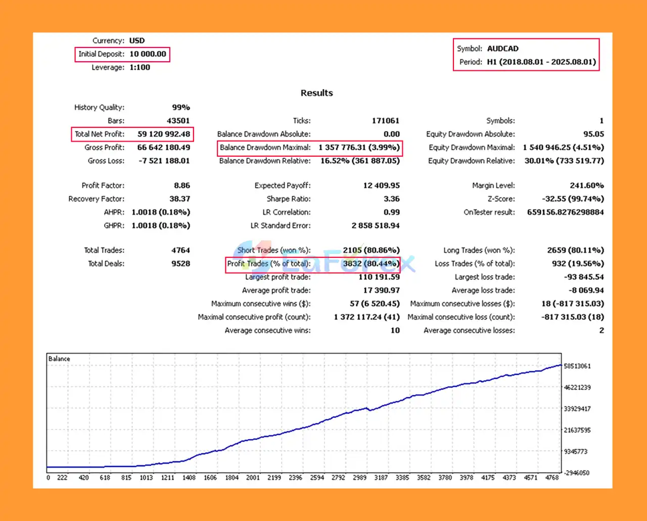 The EA is optimized for M15 to H1 timeframes. It supports multi-currency trading and works effectively on major Forex pairs such as EURUSD and AUDCAD, especially under stable spread conditions.