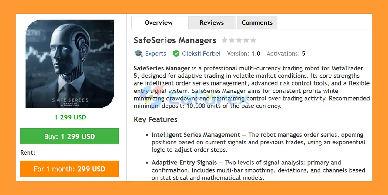 In summary, SafeSerie Managers EA MT4 is a professional multi-currency Forex trading robot built for structured order series management and adaptive performance in volatile market conditions. Developed by Oleksii Ferbei, this EA integrates intelligent grid/martingale logic, dual-level entry signals, and advanced risk management tools to balance profitability and drawdown control.