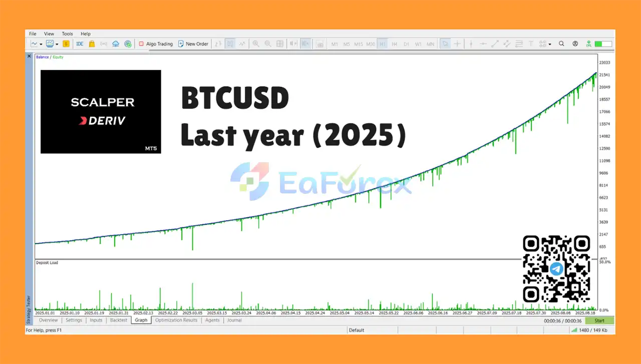 Scalper Deriv EA MT5 works across both Forex pairs (like EURUSD, GBPUSD, USDCHF) and Synthetic Indices from Deriv (such as Volatility 75, Crash, Boom, Step, and Range Break). This multi-market capability makes it ideal for traders seeking diversification and consistent returns.