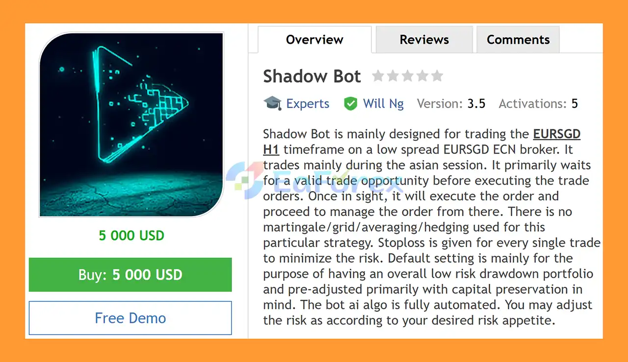 In summary, Shadow Bot MT4 is a reliable, fully automated trading solution for EURSGD traders who prioritize capital preservation, low drawdown, and consistent trade management. Its AI-driven approach, combined with customizable risk parameters and easy setup, makes it ideal for traders seeking a low-risk, high-precision Forex EA for long-term performance.