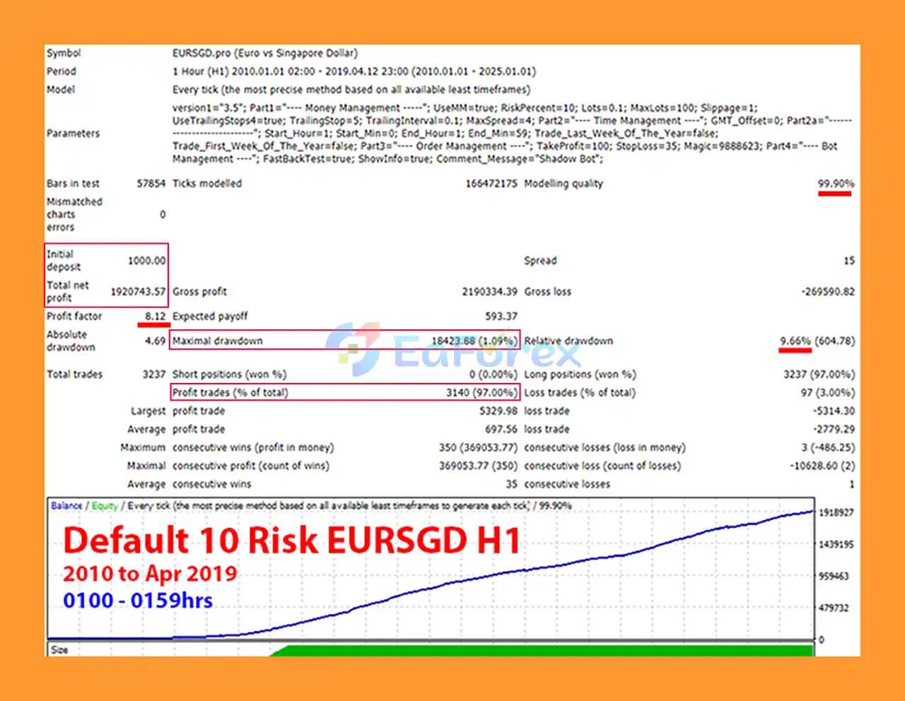 The EA is specifically optimized for EURSGD, making it ideal for traders who want a focused and high-probability trading system on this pair.