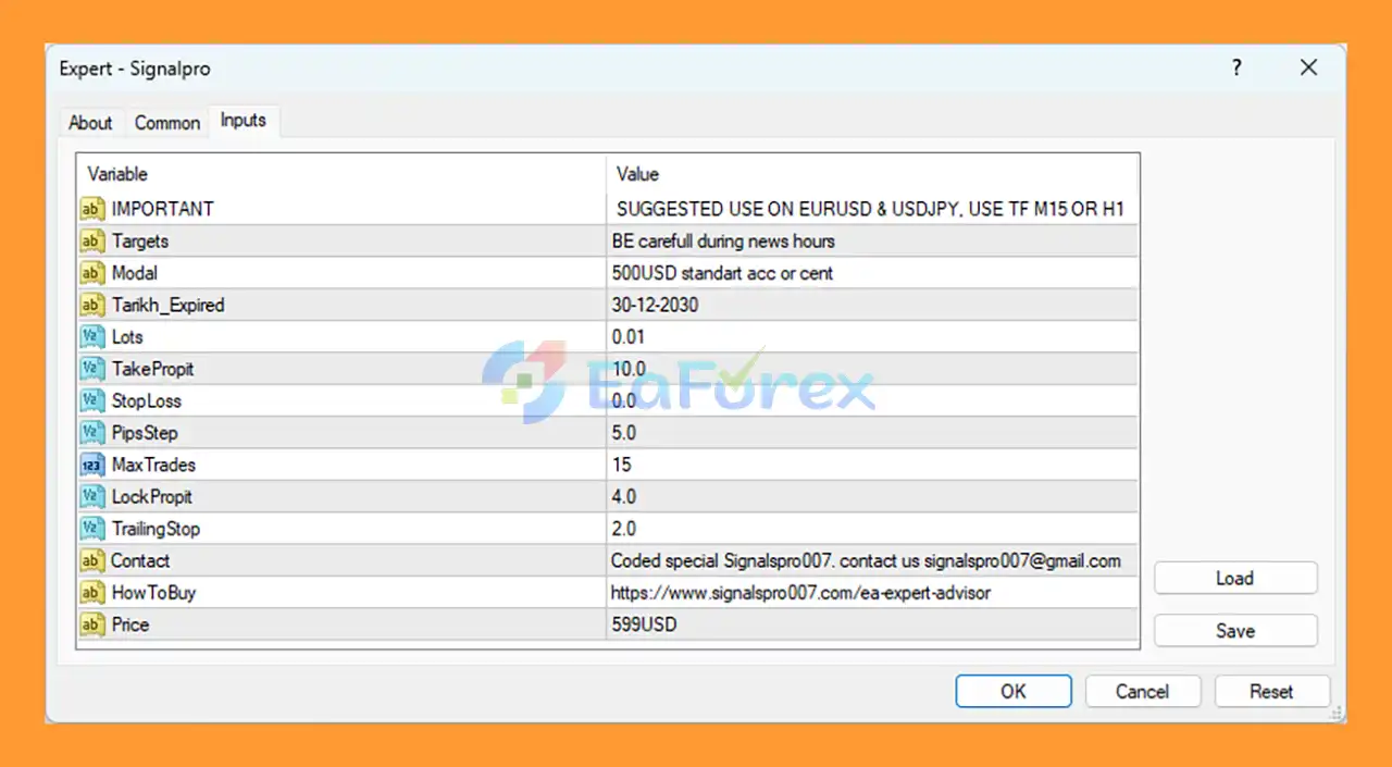 Signal Pro EA MT4 setting