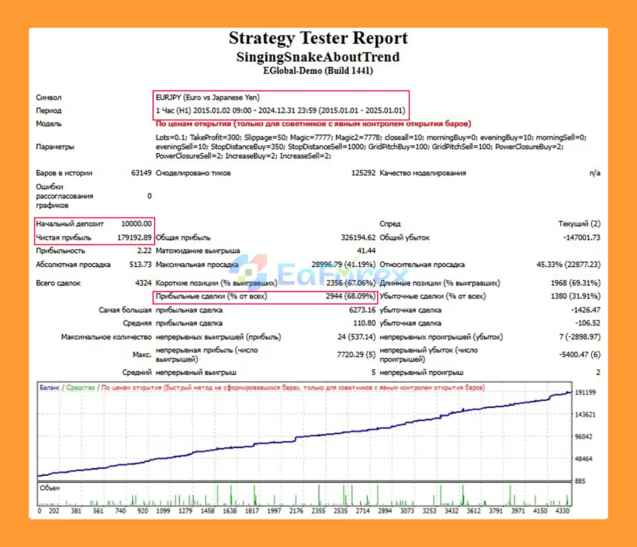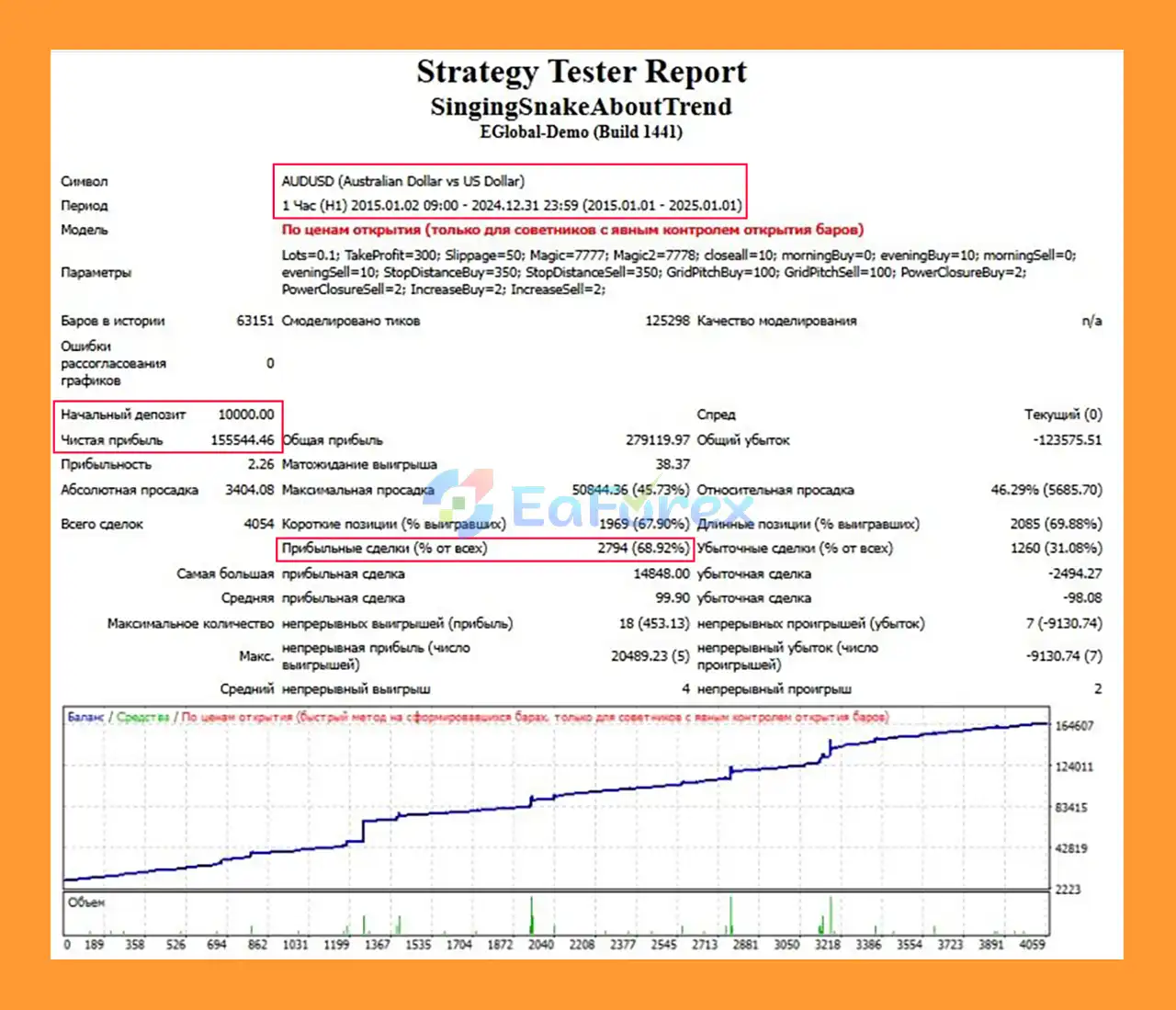 Singing Snake About Trend EA MT4 is a multi-currency trading EA that uses reverse order recovery, balance protection, and risk control to deliver stable profits