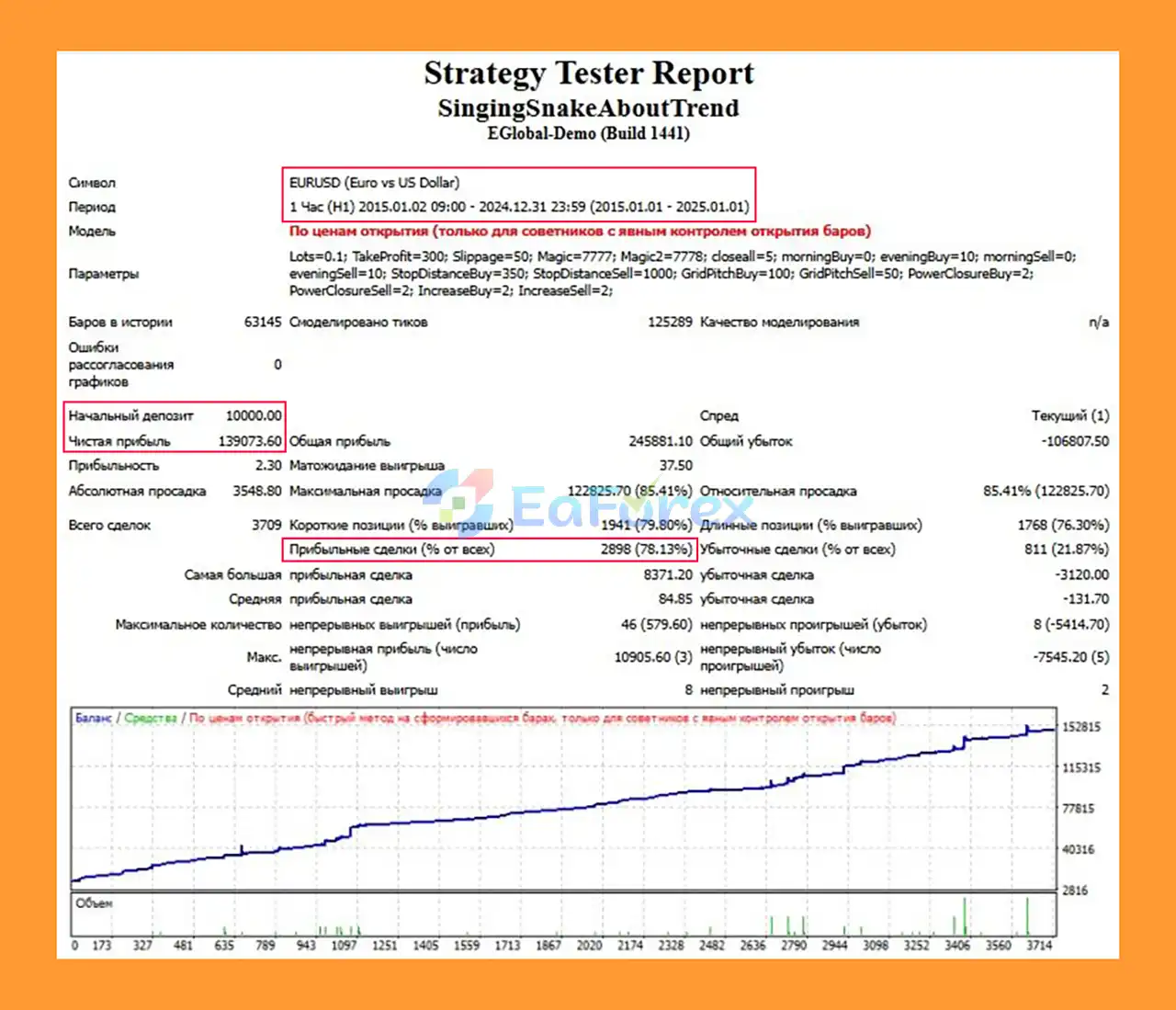 Yes. Singing Snake About Trend EA MT4 offers highly customizable settings, including lot size, recovery depth, distance between orders, balance limits, and aggressive or moderate trading modes.