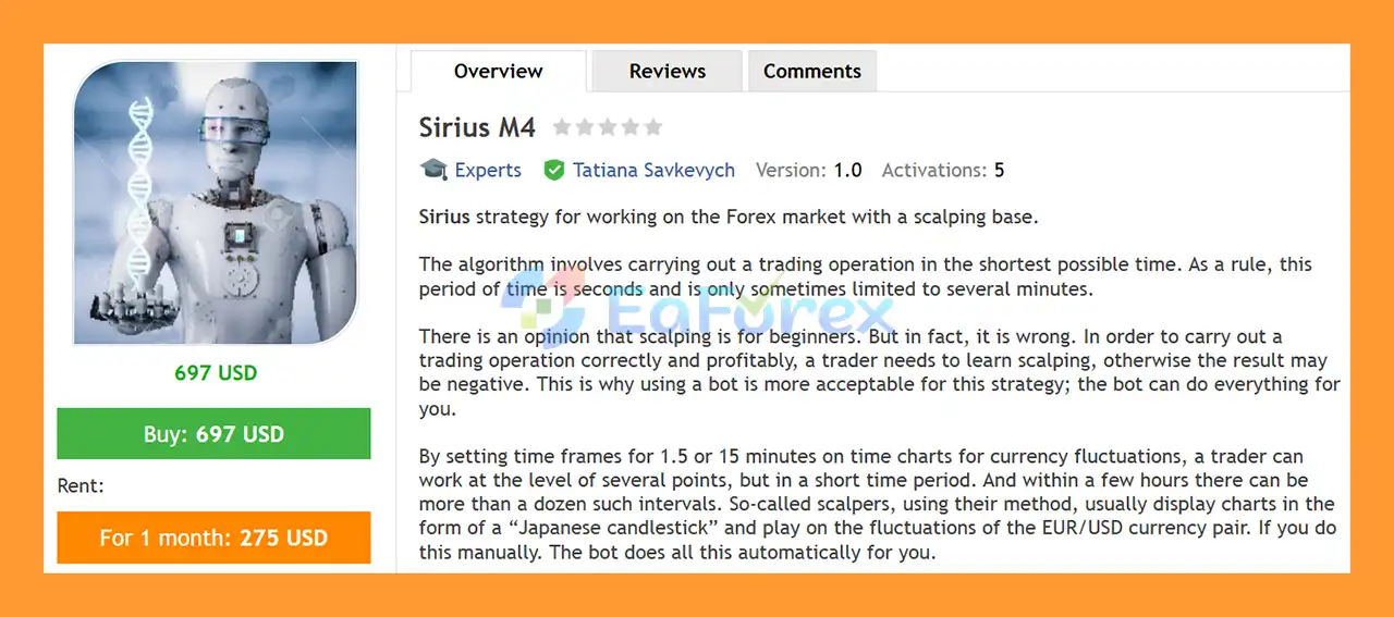 Sirius M4 is a high-performance Forex trading robot for MetaTrader 4, designed specifically for scalping strategies. It automates short-term trades to help traders capitalize on fast market fluctuations efficiently.