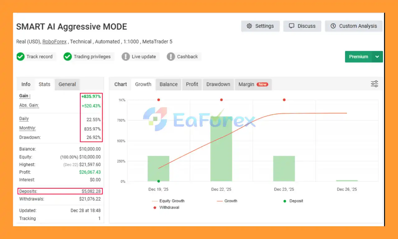 Smart AI Aggressive Mode EA MT5 Myfxbooks