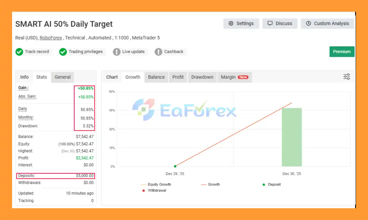 7. How is Smart AI Aggressive Mode EA MT5 performance verified?