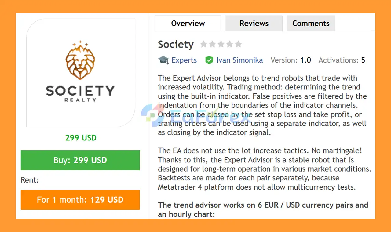 Society EA MT4 is a risk-controlled EA for trading currency pairs such as EURUSD, GBPUSD, USDCAD, USDCHF, and USDJPY. Its profitability has been proven.
