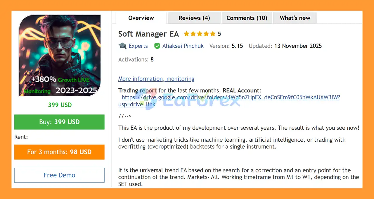 • Flagship Product: Soft Manager EA MT5 is rated as the best performing product of the year.