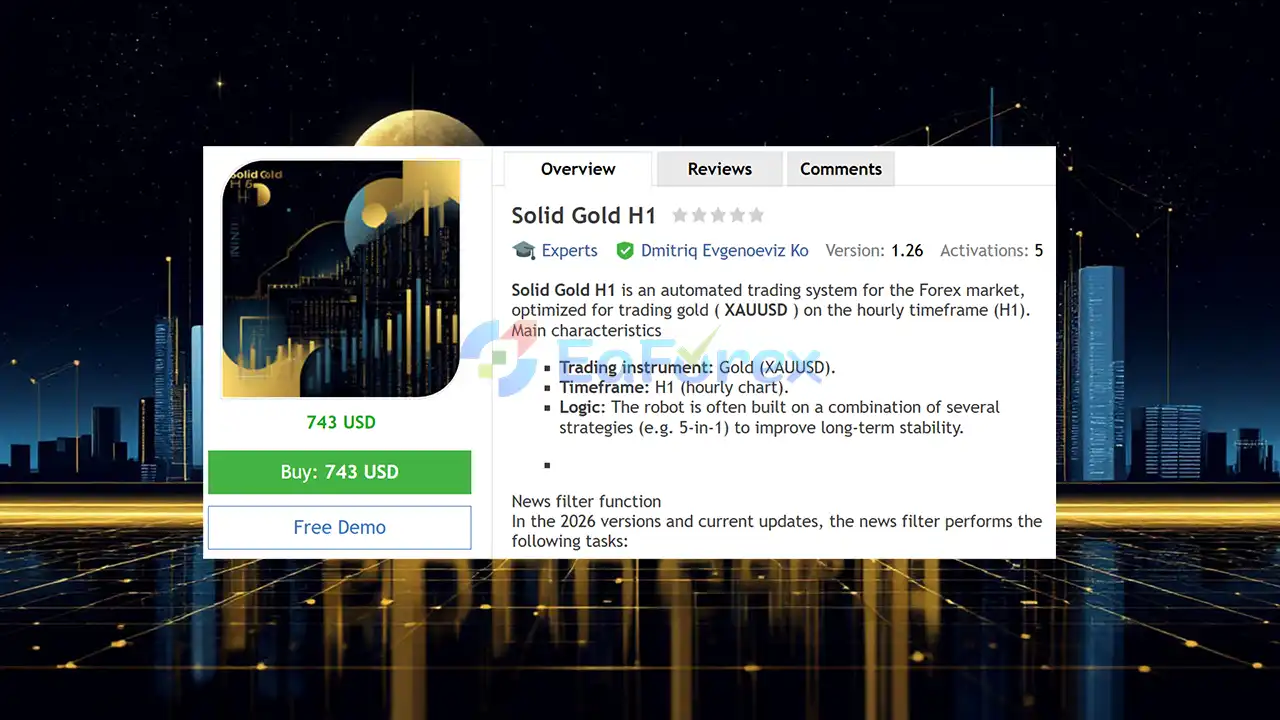 In summary, Solid Gold H1 EA MT5 is a specialized, fully automated trading system for XAUUSD that prioritizes stability, disciplined execution, and capital protection. Optimized for the H1 timeframe, it combines multiple strategy modules, advanced news filtering, and volatility-adaptive logic to trade only under favorable market conditions. By avoiding emotional trading, dangerous methods, and chaotic news periods, Solid Gold H1 EA MT5 delivers structured, long-term algorithmic performance suited for traders seeking consistent results in the gold market.