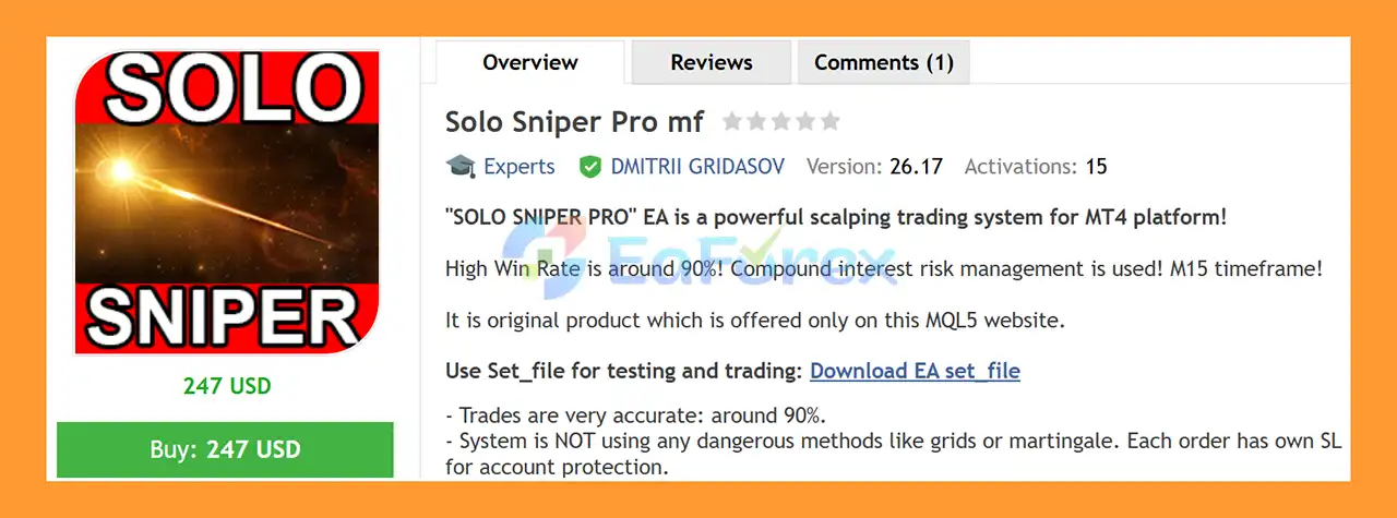 Solo Sniper Pro mf EA MT4 Overview