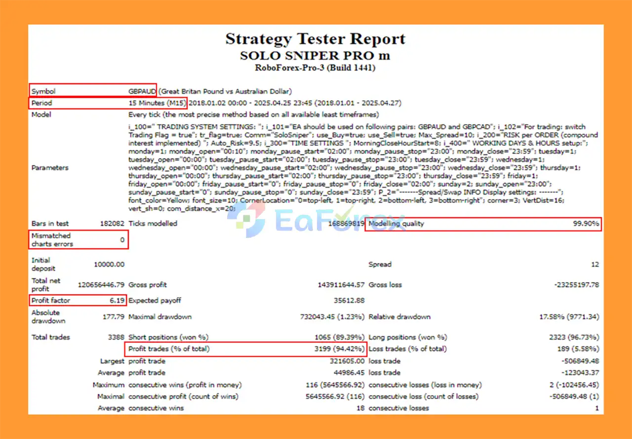 Solo Sniper Pro mf EA MT4 Backtest Results