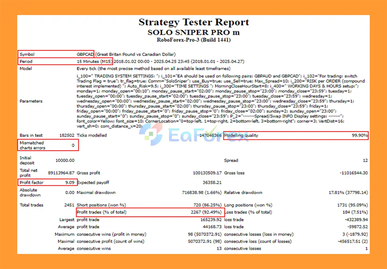 The EA is optimized for GBPAUD and GBPCAD, but can be adapted to other high-liquidity pairs with similar market behavior.