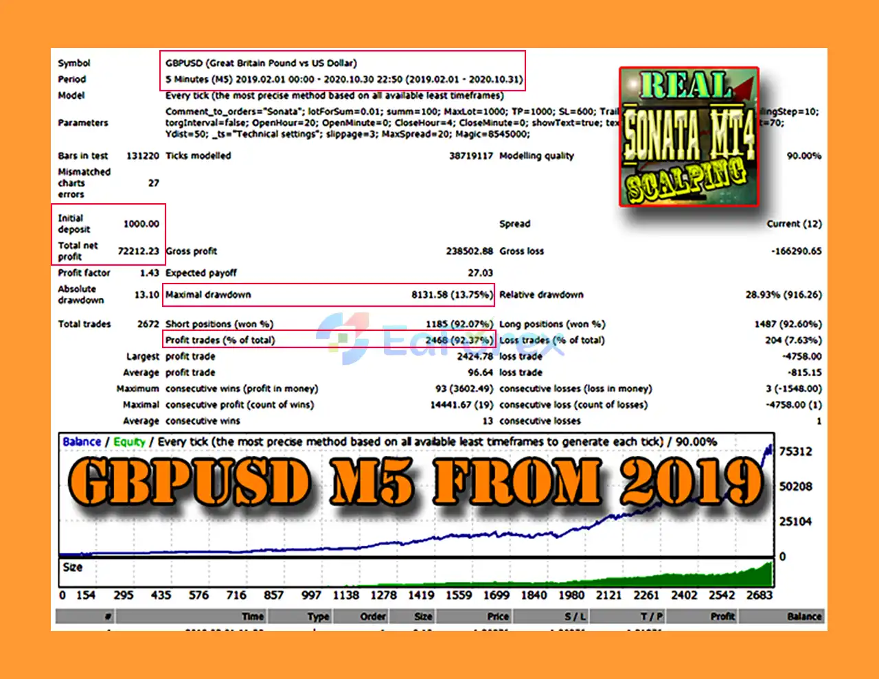 Sonata EA MT4 Backtest