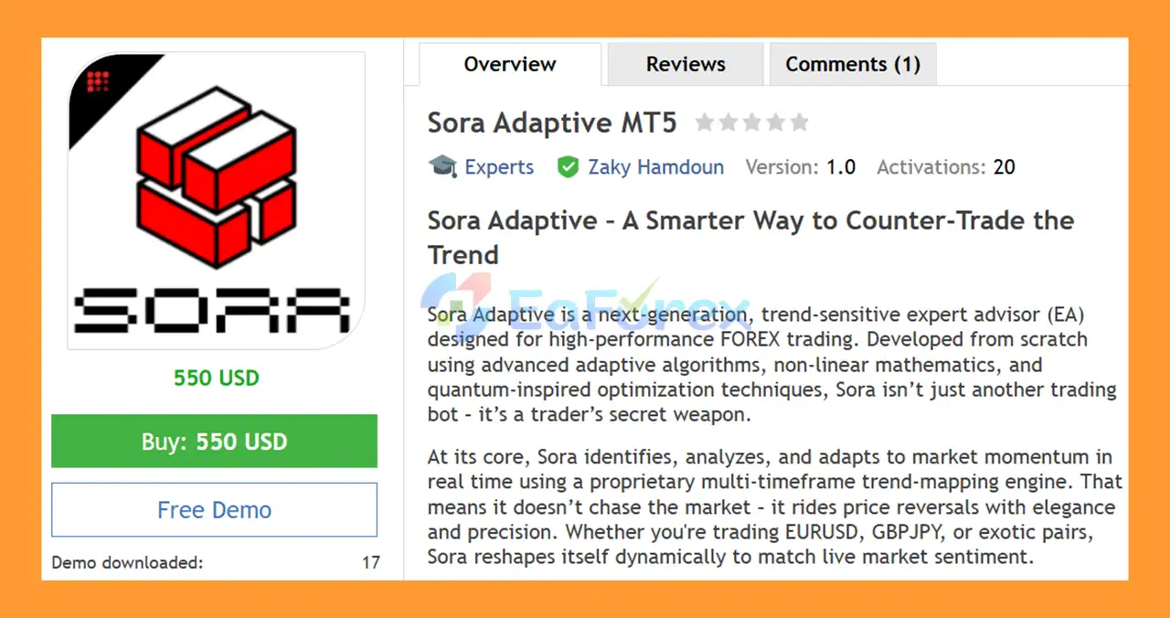 Sora Adaptive MT5 is a next-generation, trend-sensitive Expert Advisor for MetaTrader 5, designed to trade Forex with precision using adaptive algorithms, non-linear mathematics, and quantum-inspired optimization.
