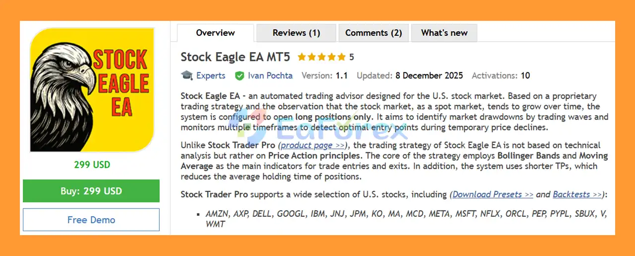 1. What is Stock Eagle EA MT5 and what market does it trade?