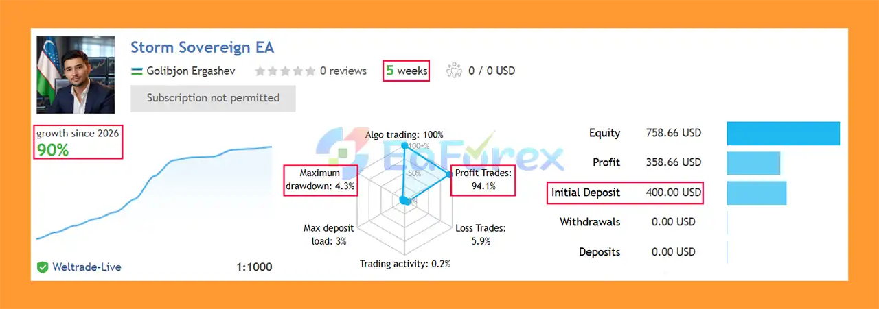 8. What are the verified performance results of Storm Sovereign EA MT5?