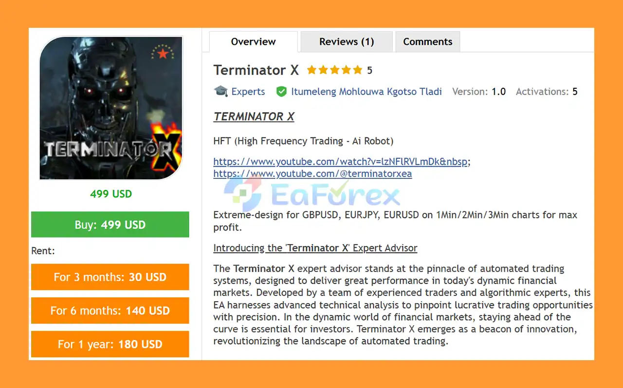 • Flagship Product: Terminator X EA MT5 is rated as the best performing product of the year.