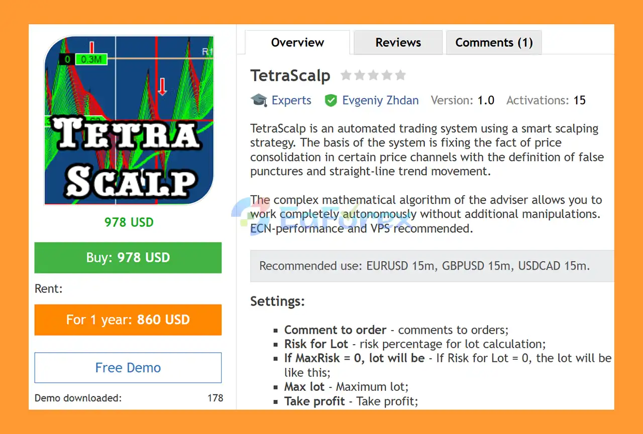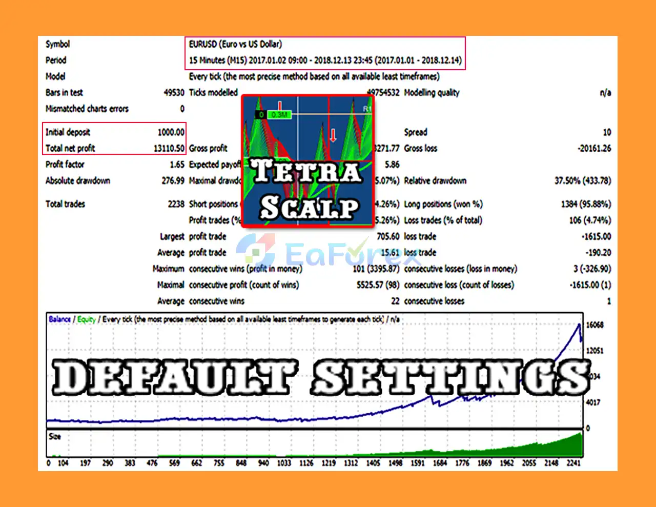 TetraScalp EA MT4 is a fully automated Forex trading robot that uses a smart scalping strategy. It identifies price consolidations, false breakouts, and straight-line trend movements to execute high-probability trades on M15 charts.