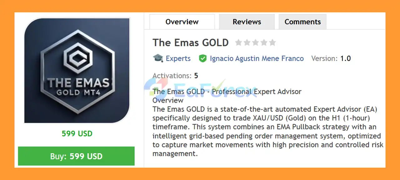 The Emas GOLD EA MT4 is a professional automated trading robot developed for MetaTrader 4, specifically optimized for trading XAU/USD (Gold) on the H1 timeframe. It integrates an advanced EMA Pullback strategy with intelligent grid management and strict risk control to deliver consistent and disciplined trading performance.