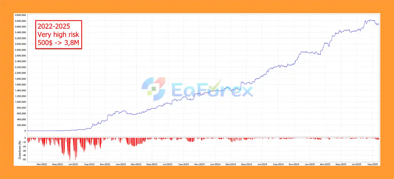 Backtests (2020–2025) demonstrate multi-million net profits: