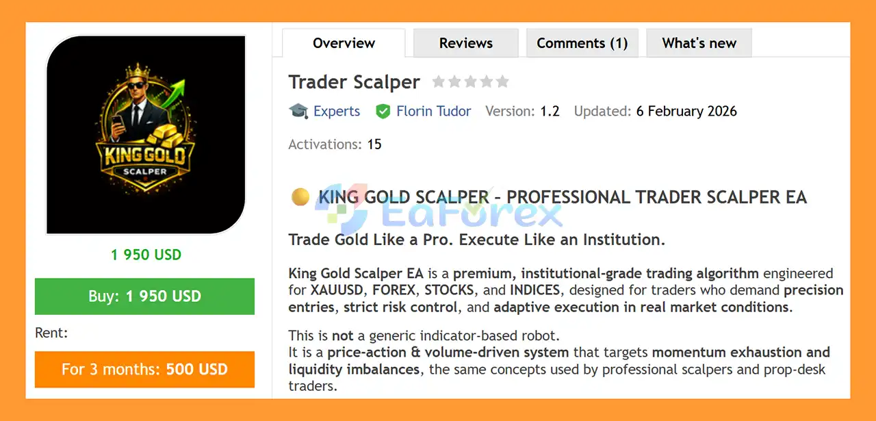 • Notable Products: Trader Scalper EA, Fx Gold Plus EA MT5, Gold Trader Scalper EA, Queen of Gold Royal Scalper, Trader Scalper, Fx Trader Pro and other advisors.