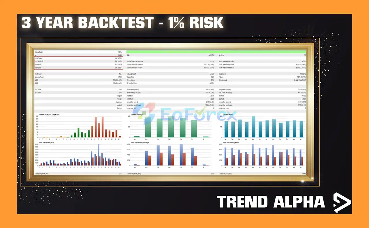 Trend Alpha EA MT5 is a multi-asset, trend-following EA for Forex, indices, gold, and crypto, offering automated, low-risk trading with steady growth.