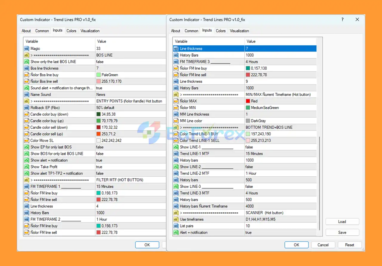 • The Trend Lines PRO indicator on MT4 accurately detects true market trend changes using Break of Structure (BOS) lines. Signals that don’t redraw remain after the candle closes, providing reliable entry points for traders.