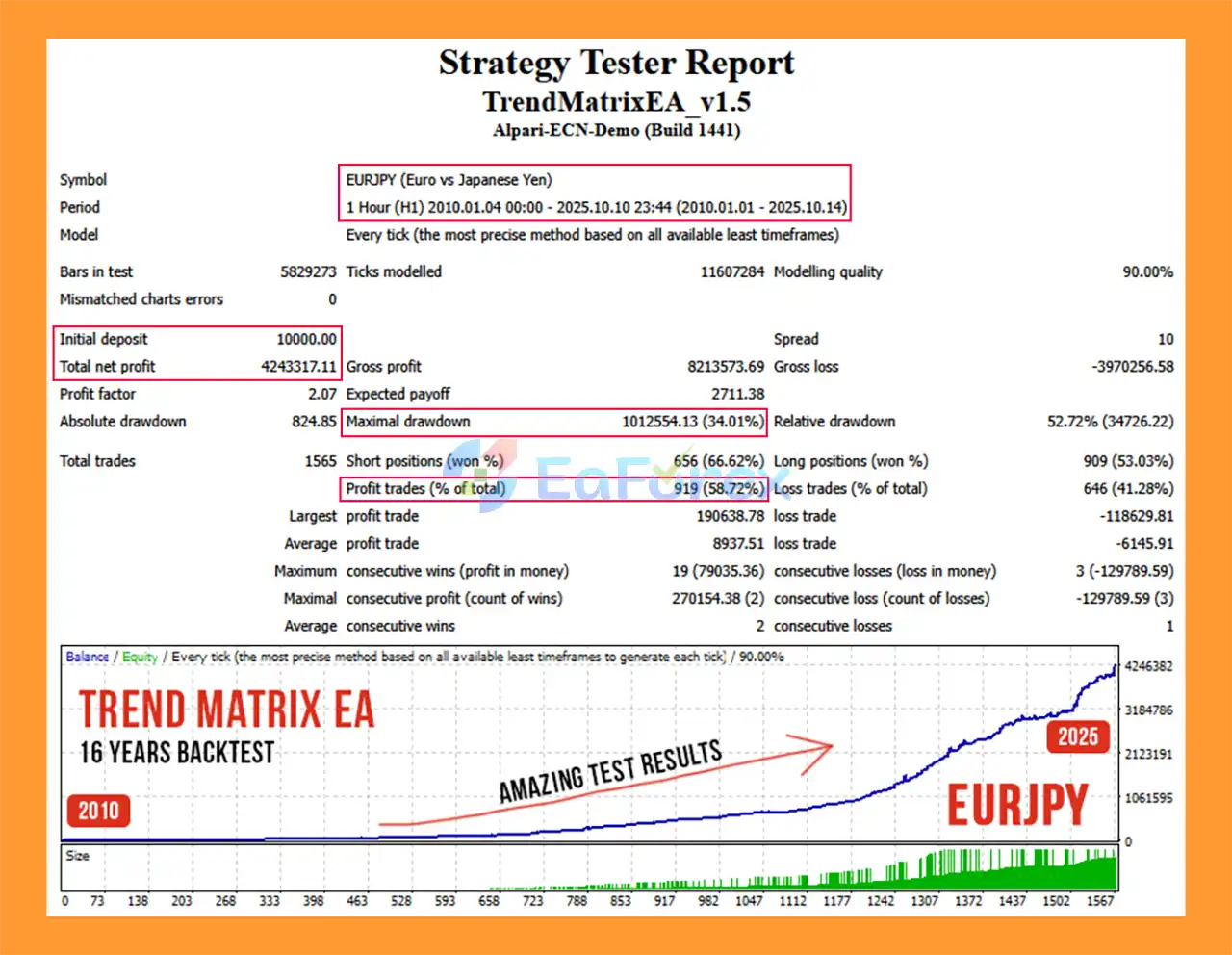 Trend Matrix EA MT5 is ideal for traders seeking a transparent, trend-based automated strategy with strong risk control, long-term backtest validation, and the flexibility to trade multiple assets on MetaTrader 5.