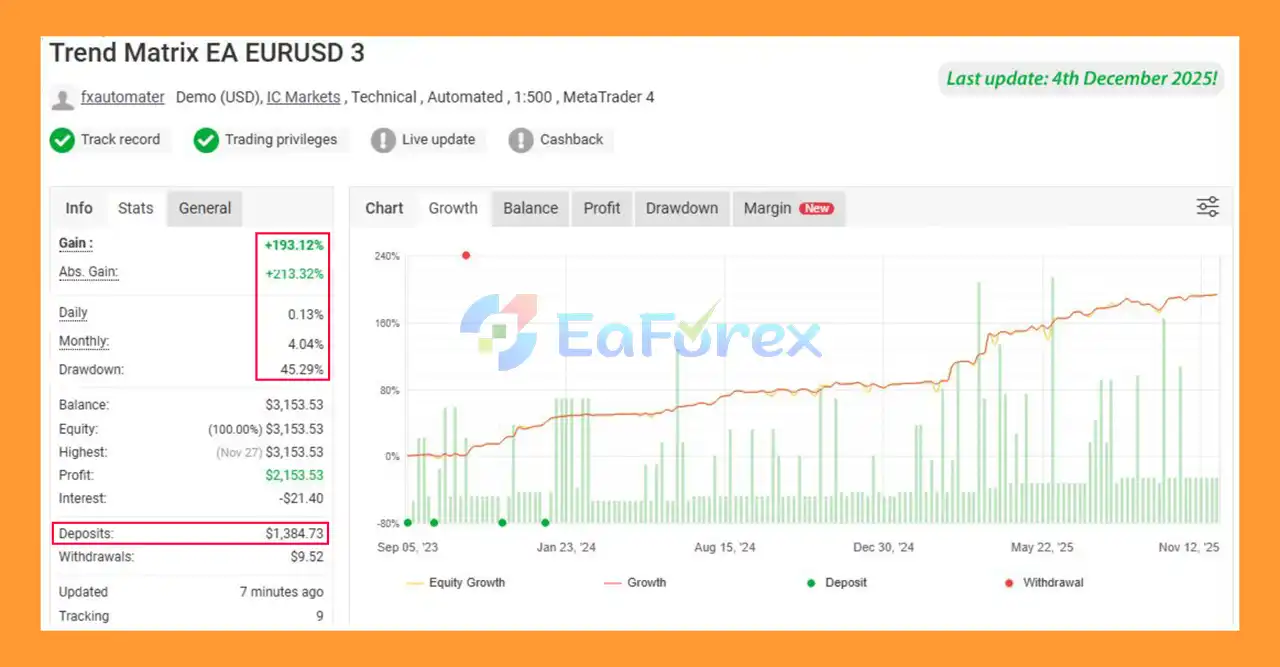 Trend Matrix EA MT5 is a stable automated trading robot for forex, metals, and commodities. Its profit performance has been verified by myfxbook.