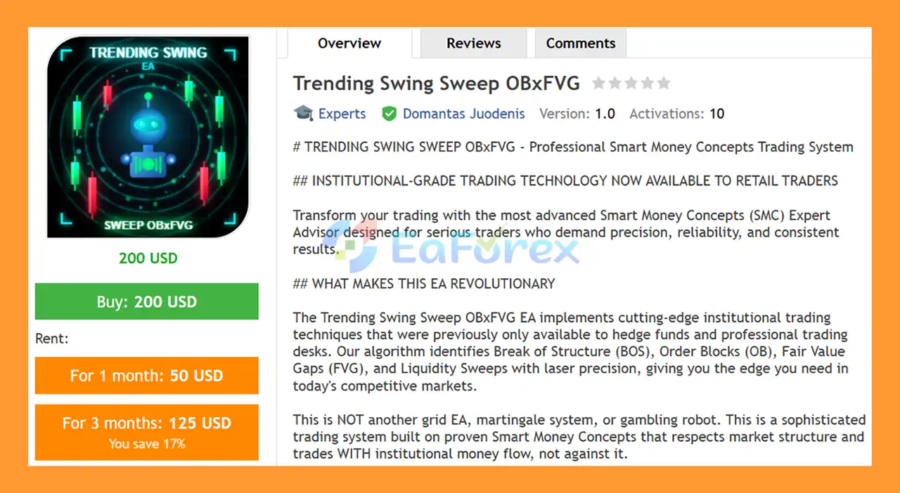 10. What makes Trending Swing Sweep OBxFVG EA MT5 different from other MT5 Smart Money EAs?