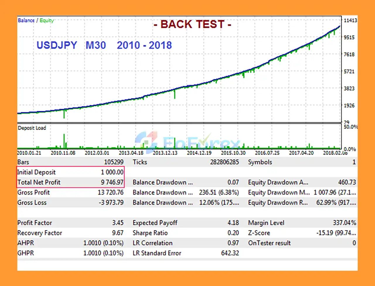 USDJPY (8 years): $1,000 → $9,746.97, Drawdown: 6.38%