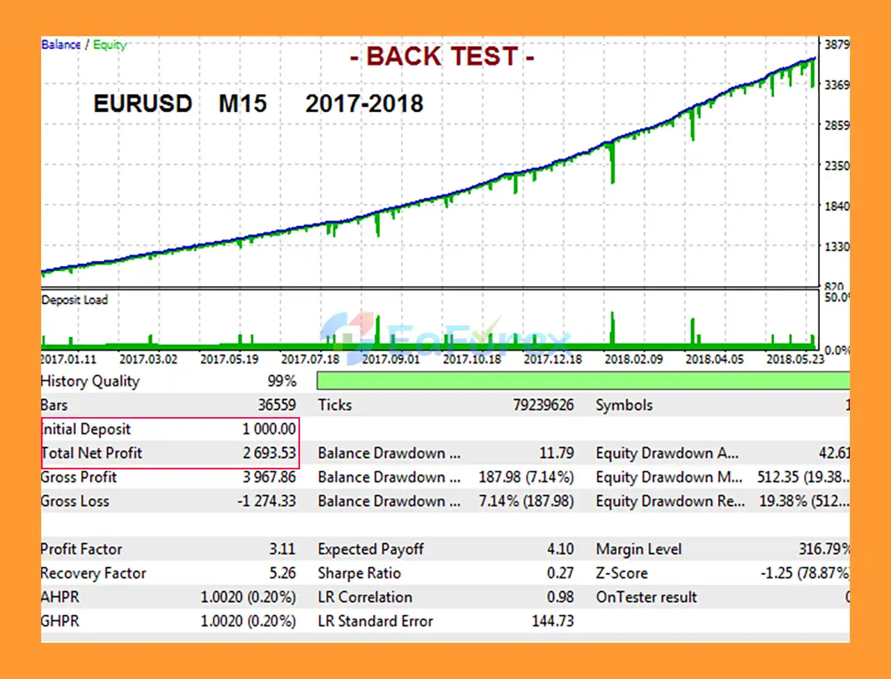 EURUSD (12 months): $1,000 → $2,693.53, Drawdown: 7.14%