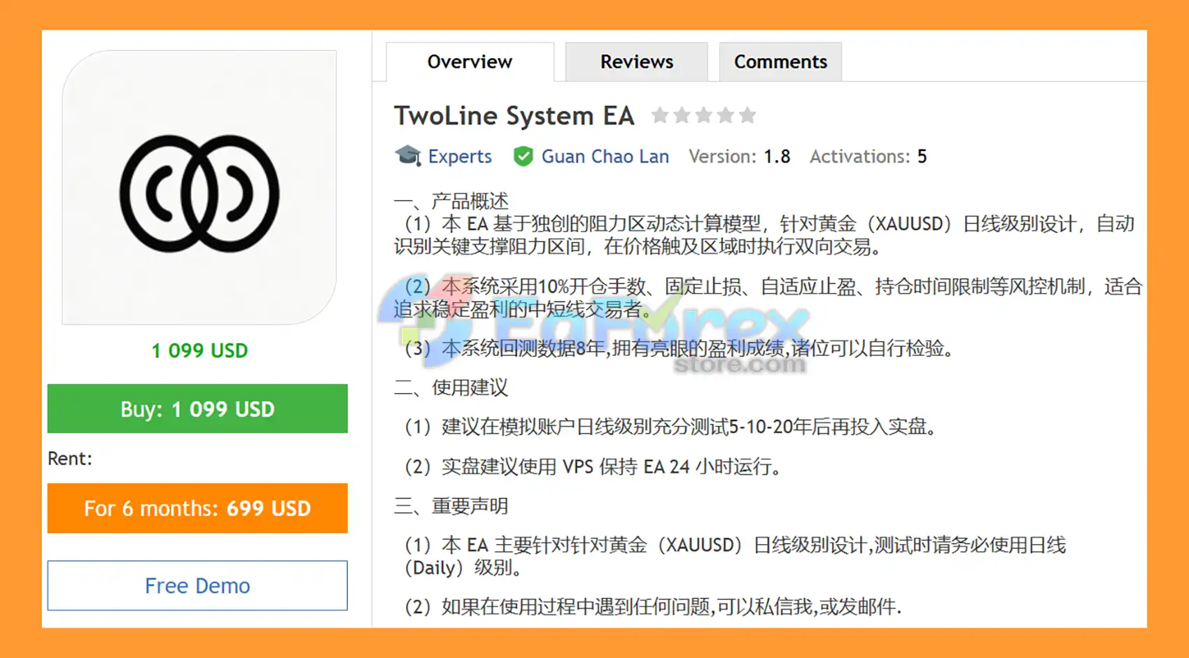 • Notable Products: TwoLine System EA MT4, Extreme Trading System EA MT5 and other advisors.