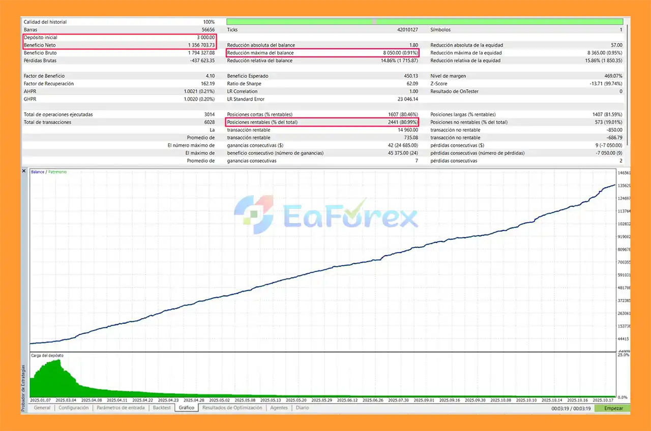 The EA can start operating with a recommended minimum deposit of around $200. However, traders may prefer higher balances to allow more flexibility in risk settings and position sizing.
