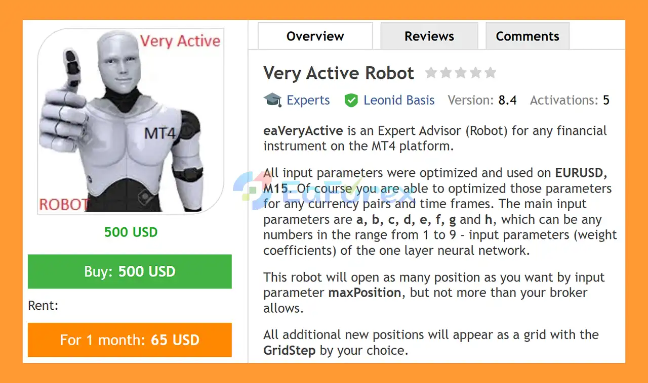 - Notable Products: Very Active Robot MT4, Accelerator EA MT4, Trading Machine EA MT4, Schrodinger Trading Machine MT4 and other advisors.