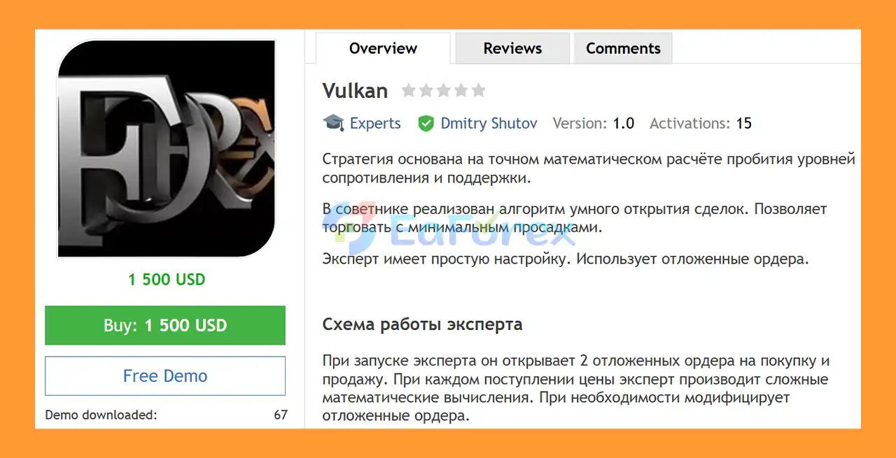 • Notable Products: Vulkan MT4, Take Profit EA, Sur Ron MT4, Minotaur MT4, Kryptonite MT4, Elbrus way MT4 and other advisors.