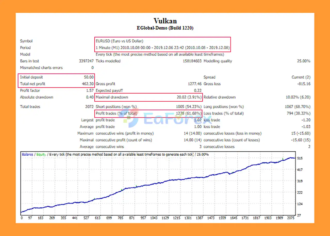 4. What are the backtest results of Vulkan EA MT4?