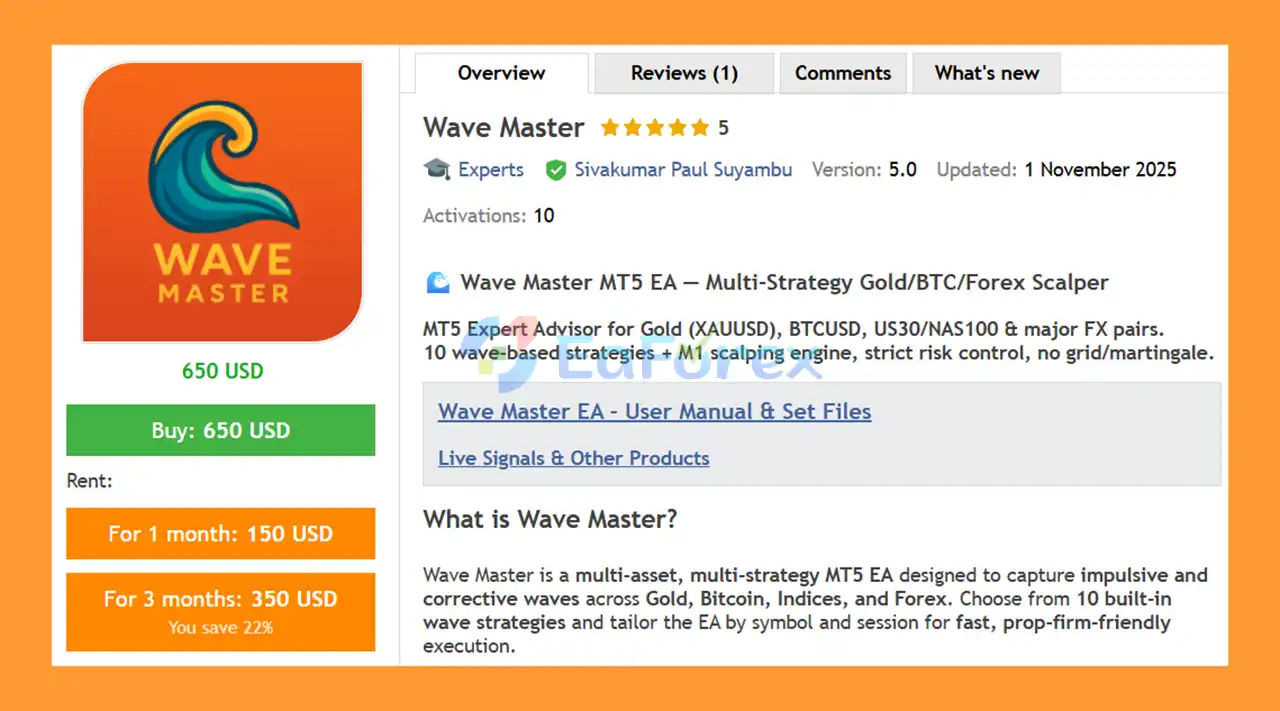• Flagship Product: Wave Master EA MT5 is rated as the best performing product of the year.