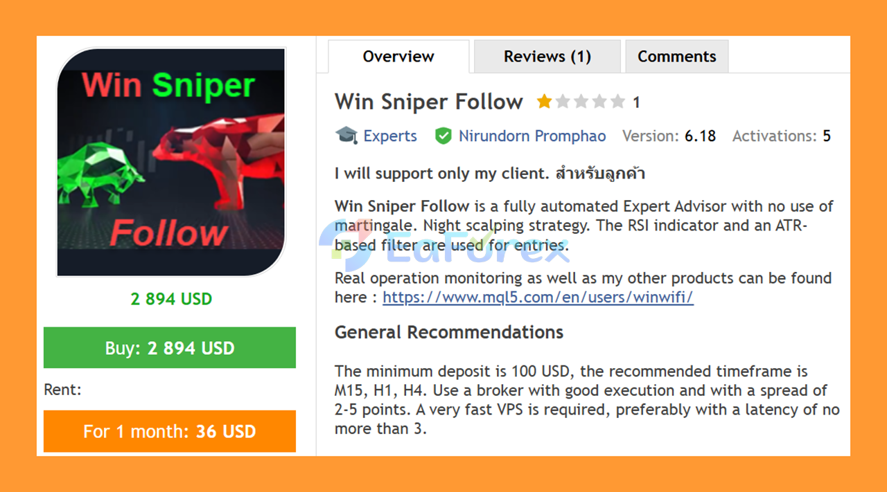 In summary, Win Sniper Follow EA MT4 is a fully automated Forex Expert Advisor built for stable, low-risk trading using trend-following and night scalping strategies. By combining RSI indicators with ATR-based filters, it delivers high-probability trade entries while avoiding high-risk methods such as martingale or grid systems. Featuring adaptive lot sizing, randomized trade logic, and full automation, the EA adjusts seamlessly to different account sizes and market conditions. Suitable for both Forex and Gold trading, Win Sniper Follow EA MT4 is a reliable, beginner-friendly solution designed for long-term, emotion-free trading performance.